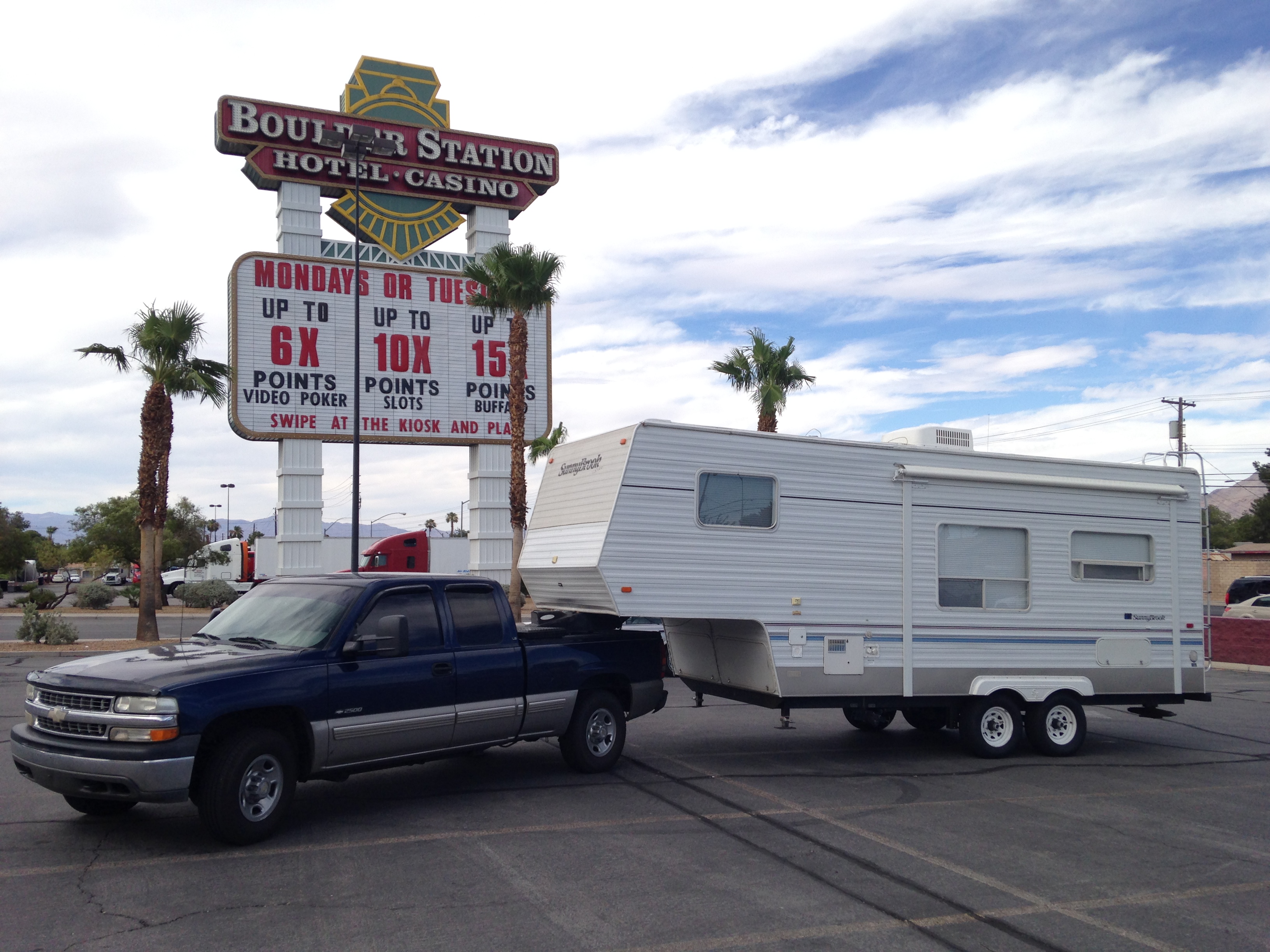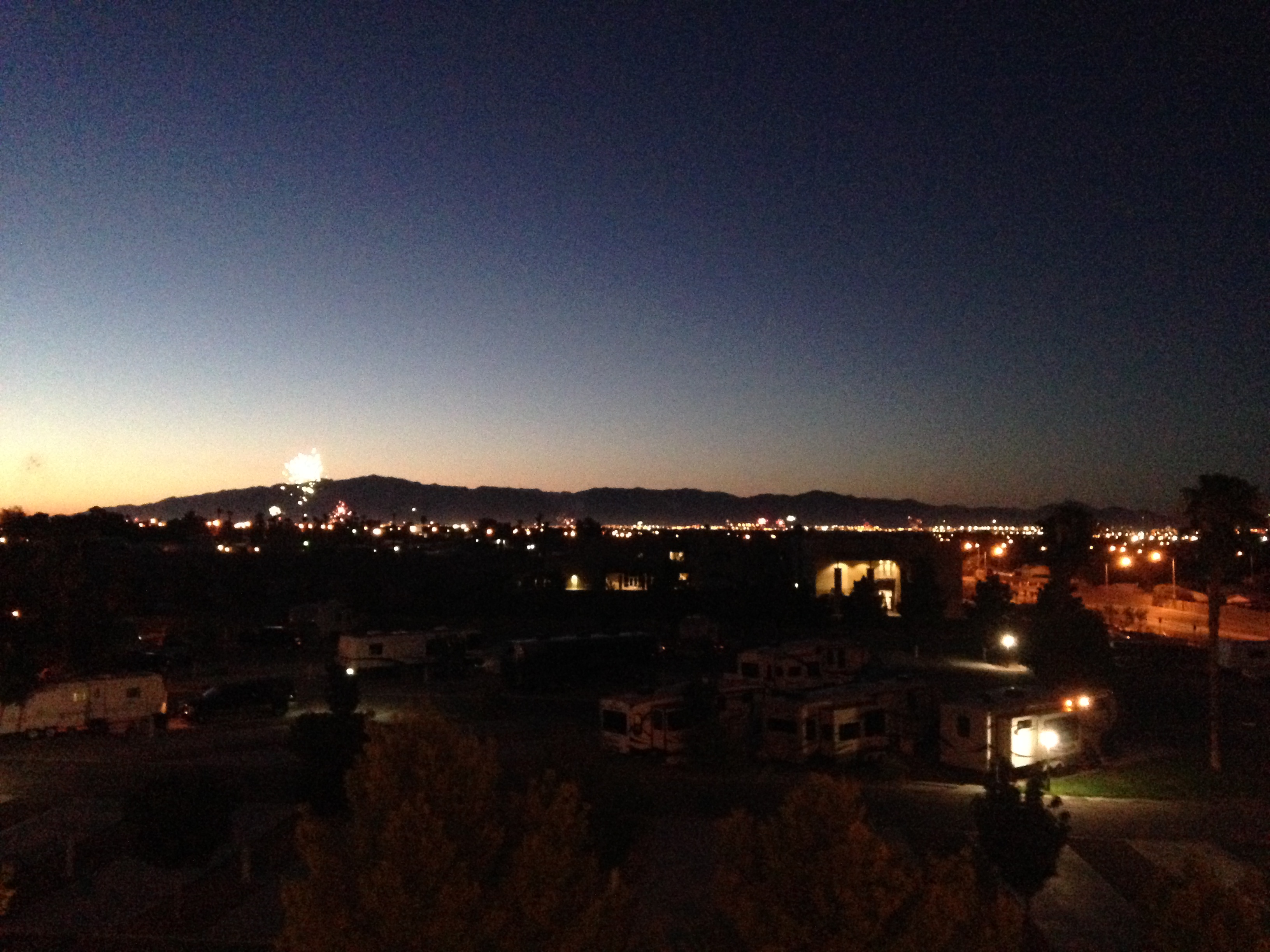 There is an RV park next to Casino Boulder Station called Arazona Charle's. I highly recommend it. It's walking distance to many casinos including Sams Town which is really neat too. One of the photos shows what was a 360 degree firework show as it was the 4th of July. I've never seen so many fireworks all happening at one time.