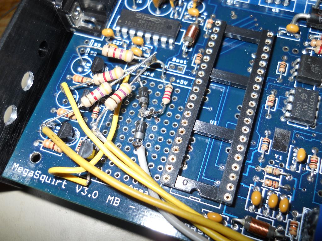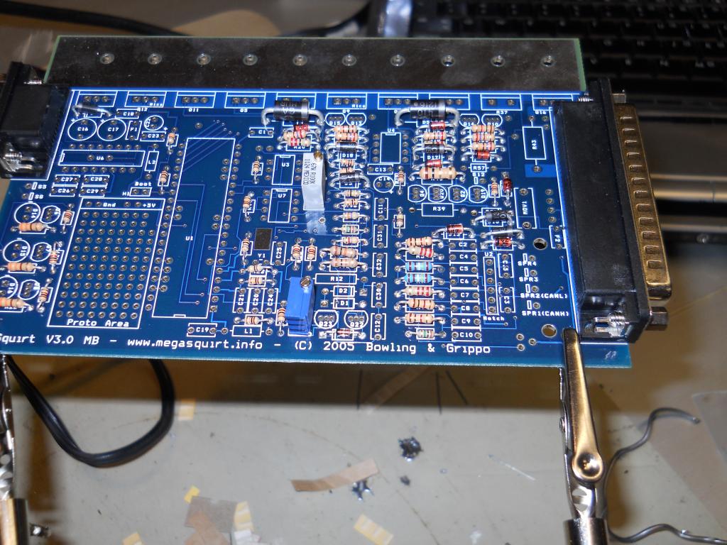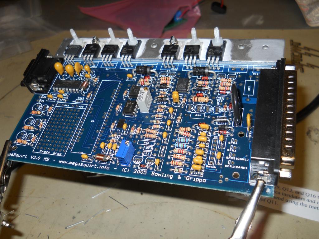 The kit came with about 200+ pieces. Circuit boards, resistors, diodes, wires, transistors, integrated circuits, etc. At first I thought maybe I made a grave mistake. My dad was an electronics technician for some years and came over to help me get started. Though I had done a bit of soldering prior, I was not prepared for something this complex. I started reading the manual and got to work. After about 10-12 hours of soldering, I had the board built for a v8 engine with multiple coils that used the stock engine sensors. Cool..