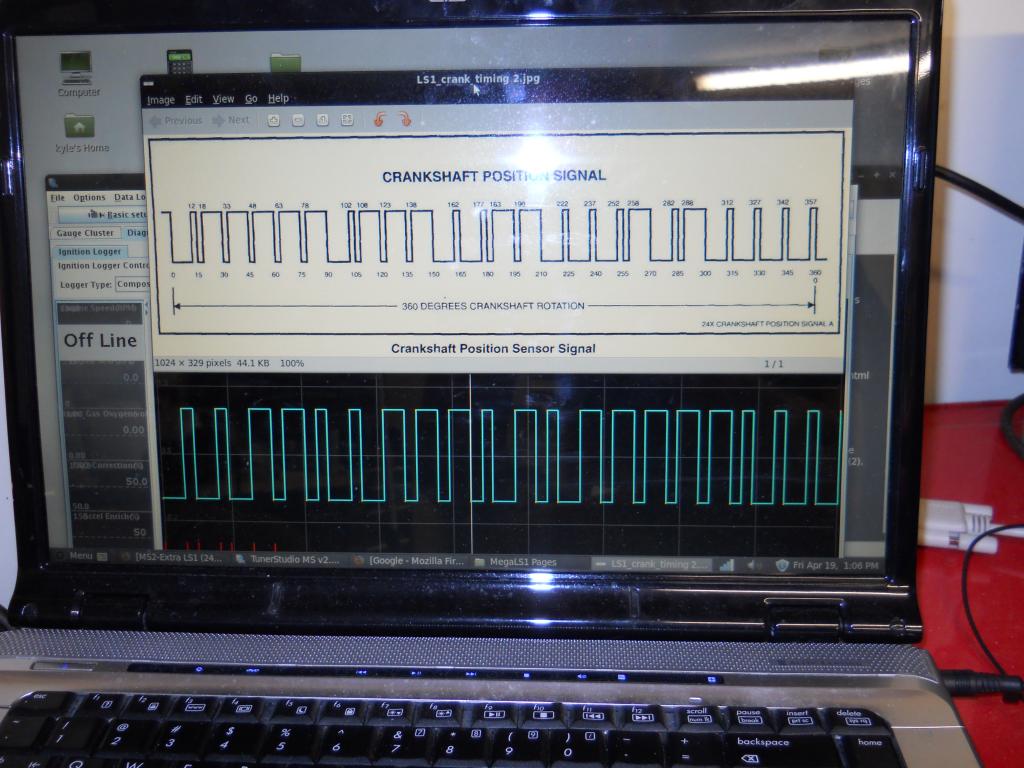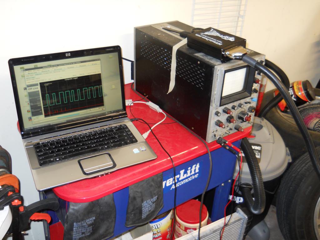 I mounted it inside the car and then began wiring things up. The process was slow. To be honest here the building of the board and wiring ended up being the easy part. Configuring the computer and getting it to actually run an engine was almost hell. I was plagued by crank position sensor problems among others. The computer was not reading the sensor properly and without it, the engine could not start. My dad brought over an OLD OLD oscilloscope and we started probing, reading diagrams, and searching for the issue starting with the sensor and working back.