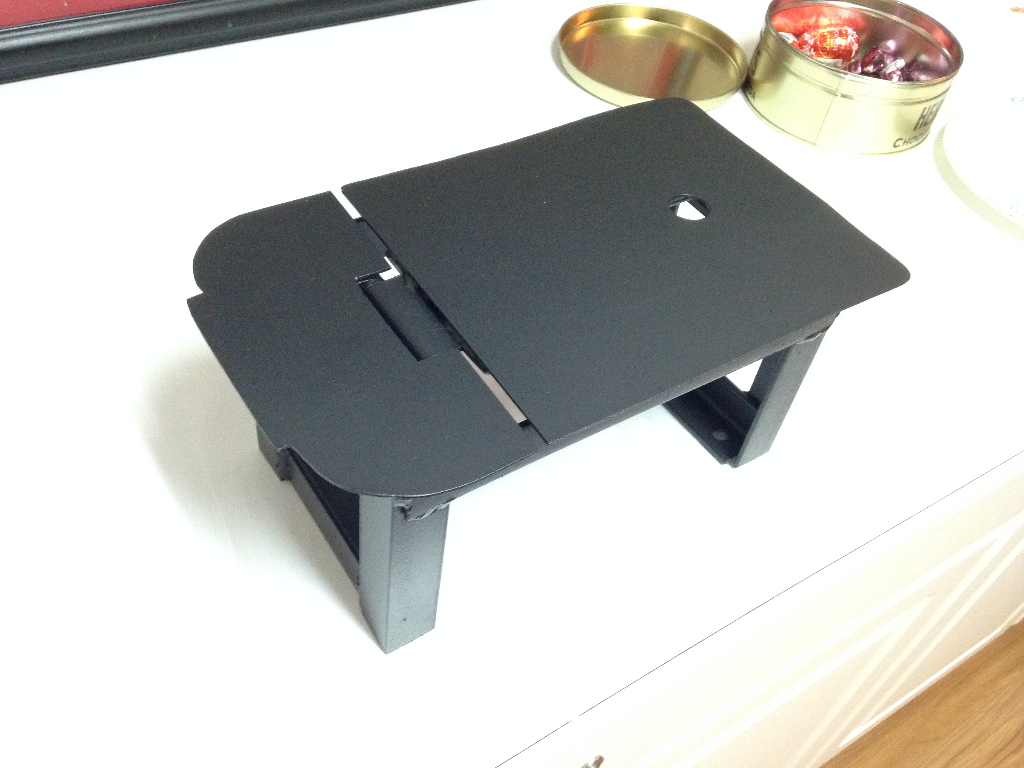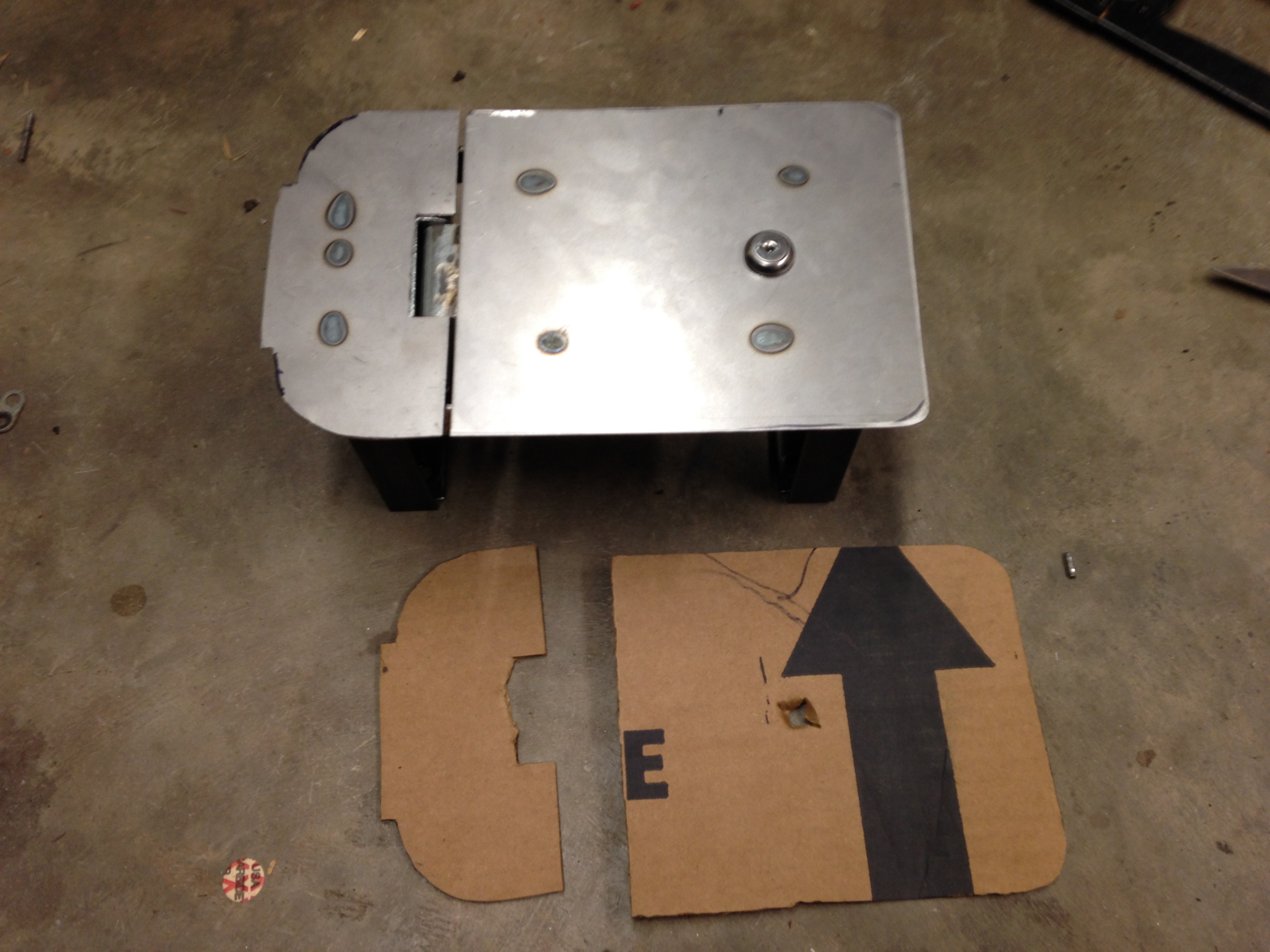I cut out a cardboard template and then used that for the 14 gauge sheetmetal lid.