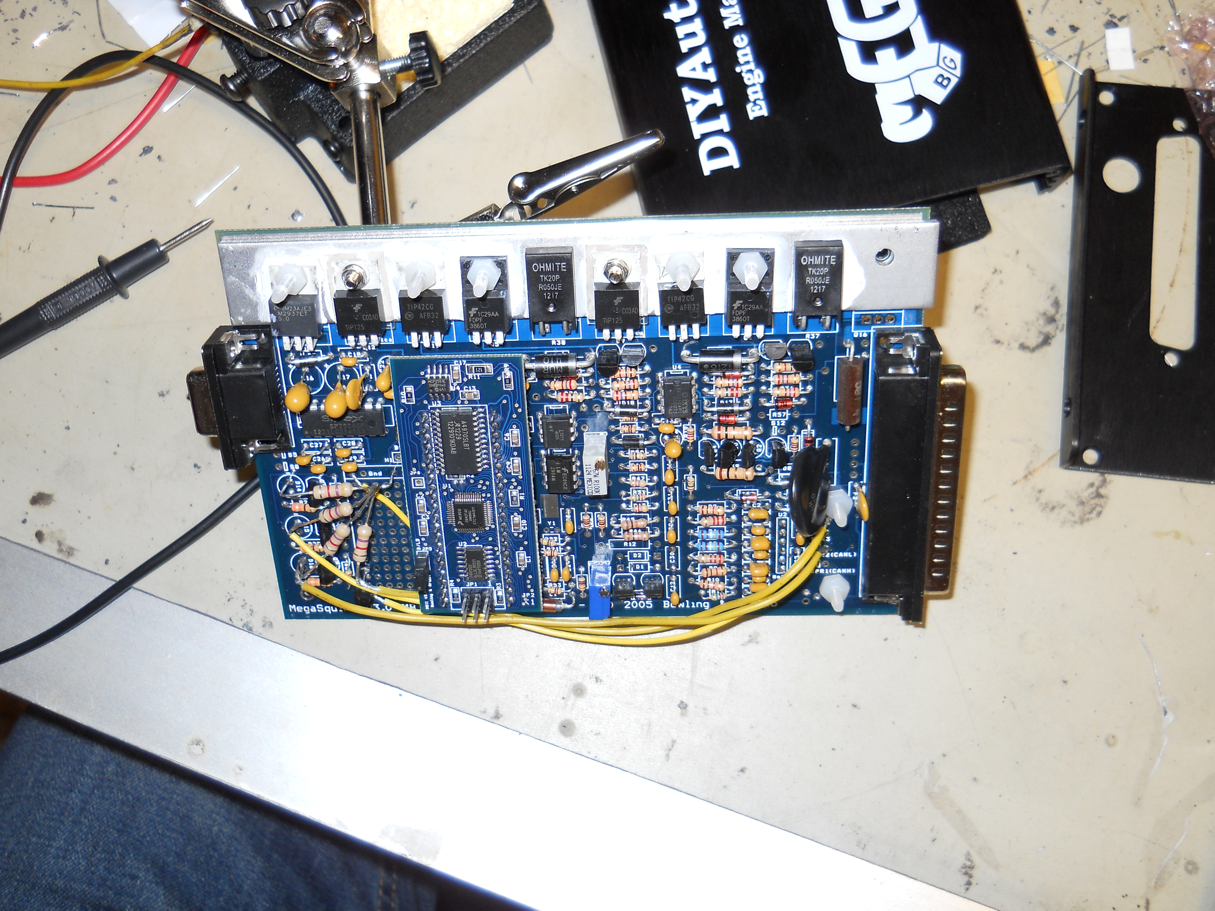 Next I recieved a chineese turbo off ebay and took at apart for cleaning. It looked pretty good! Also since I was going from a carbureted engine to a fuel injected one, and the junkyard had cut the previous engine's harness, I decided to build a Megasquirt 2.0 control board to handle the engine's fuel management and ignition timing. It took 10 hours to solder up the board. The full task can be seen in my other project!. Last step was to start wiring up the engine's stock sensors to the megasquirt computer. A painstakingly slow task.